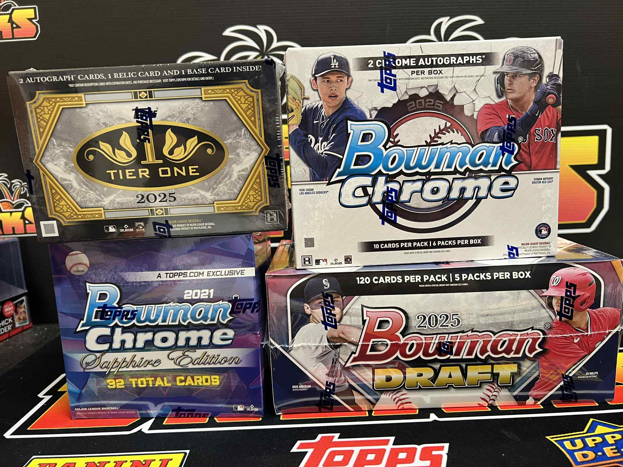 1 Box 2025 Bowman Draft Super Jumbo 1 Box 2025 Bowman Chrome Hobby 2 Boxes 2025 Topps Tier One Hobby 1 Box 2021 Bowman Chrome Sapphire